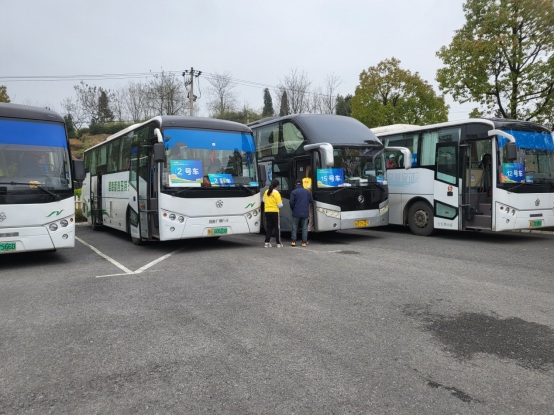 當日,17臺電動大巴車按照事先安排,早上7時前提前來到市體育館等候,集結(jié)在此參賽人員在聯(lián)絡(luò)員的安排下,有序乘車入座,車輛全程穩(wěn)健行駛,一路安全高效地將參賽人員送達至九廊錢莊自然村參加活動。11時返程回到出發(fā)地,行程約100公里。