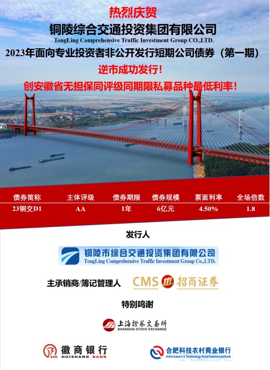 此次發(fā)行成功,創(chuàng)下安徽省同評級同期限私募品種歷史最低利率,倍數(shù)為1.8,是交投集團在資本市場的又一次華麗亮相。不僅豐富了交投集團直融產(chǎn)品體系,優(yōu)化了交投集團負債利率水平,同時為后續(xù)交投集團在資本市場的持續(xù)運作打下堅實基礎。