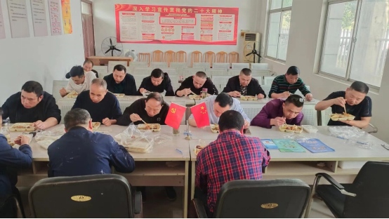 圖為駕駛員師傅們?cè)跁?huì)議室匆忙用餐