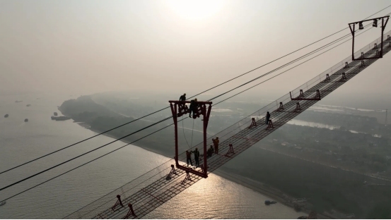 自10月20日先導(dǎo)索過(guò)江,到11月30日最后一個(gè)門(mén)架安裝完成,大橋貓道在45天內(nèi)安全完工,為大橋纜索系統(tǒng)的施工創(chuàng)造了良好條件。未來(lái),一股股纜索將在其上完成“穿針引線(xiàn)”,為大橋主梁過(guò)江提供關(guān)鍵支撐。