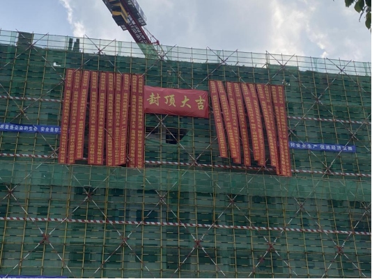5月12日上午,萬里晴空,惠風和暢,鳳起宸鳴項目施工現(xiàn)場掌聲雷動。隨著B18號樓屋面混凝土開始澆筑,意味著項目主體整體封頂。交投置業(yè)總經(jīng)理趙麗及所有參建單位相關(guān)負責人共同見證了項目開工以來最為激動人心的階段性成果。