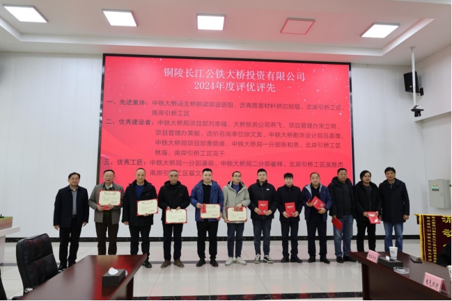 會(huì)議對榮獲“百日大干”勞動(dòng)競賽及G3銅陵長江公鐵大橋2024年度先進(jìn)集體及先進(jìn)個(gè)人進(jìn)行了表彰并頒獎(jiǎng)。對2025年大橋保通作出部署要求,明確各重點(diǎn)工程完成的時(shí)間節(jié)點(diǎn),確保在7月1日前全面完成大橋主體及附屬工程達(dá)到公路通車條件。