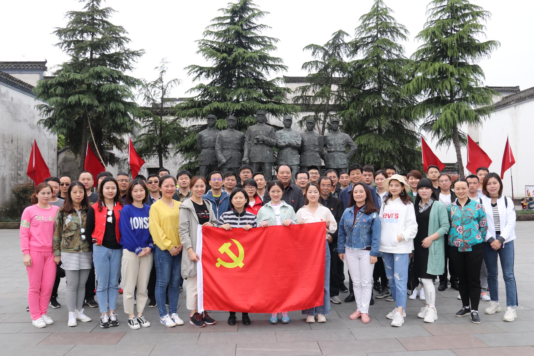 在巖寺新四軍軍部舊址紀(jì)念館廣場(chǎng),公司全體黨員職工集體瞻仰了新四軍六將領(lǐng)雕像,表達(dá)對(duì)革命先輩的深切緬懷和無(wú)限敬仰。
