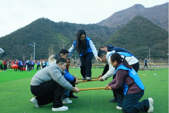 活動前期,集團公司精心謀劃、周密部署,結(jié)合交通基建行業(yè)特點與員工需求,制定了“協(xié)作-放松-凝聚”閉環(huán)式活動方案,配套完善的安全保障與后勤服務(wù),確?;顒佑行蚋咝ч_展。12月31日下午,大家乘坐大巴車抵達池州后,迅速開啟破冰建隊環(huán)節(jié)。各小組推選隊長、設(shè)計隊名與口號,通過風(fēng)采展演快速拉近彼此距離,打破部門隔閡。隨后,“源源不斷”“暢行無阻”“車輪滾滾”等協(xié)作項目輪番上演,隊員們手拉手穿越呼啦圈、同步驅(qū)動充氣毛毛蟲、齊心協(xié)力滾動團隊車輪,在默契配合中強化“分工協(xié)作、精準規(guī)劃”的協(xié)同意識,賽場內(nèi)外歡呼聲、喝彩聲此起彼伏,充分展現(xiàn)了“交投人”昂揚向上、奮勇爭先的精神風(fēng)貌。