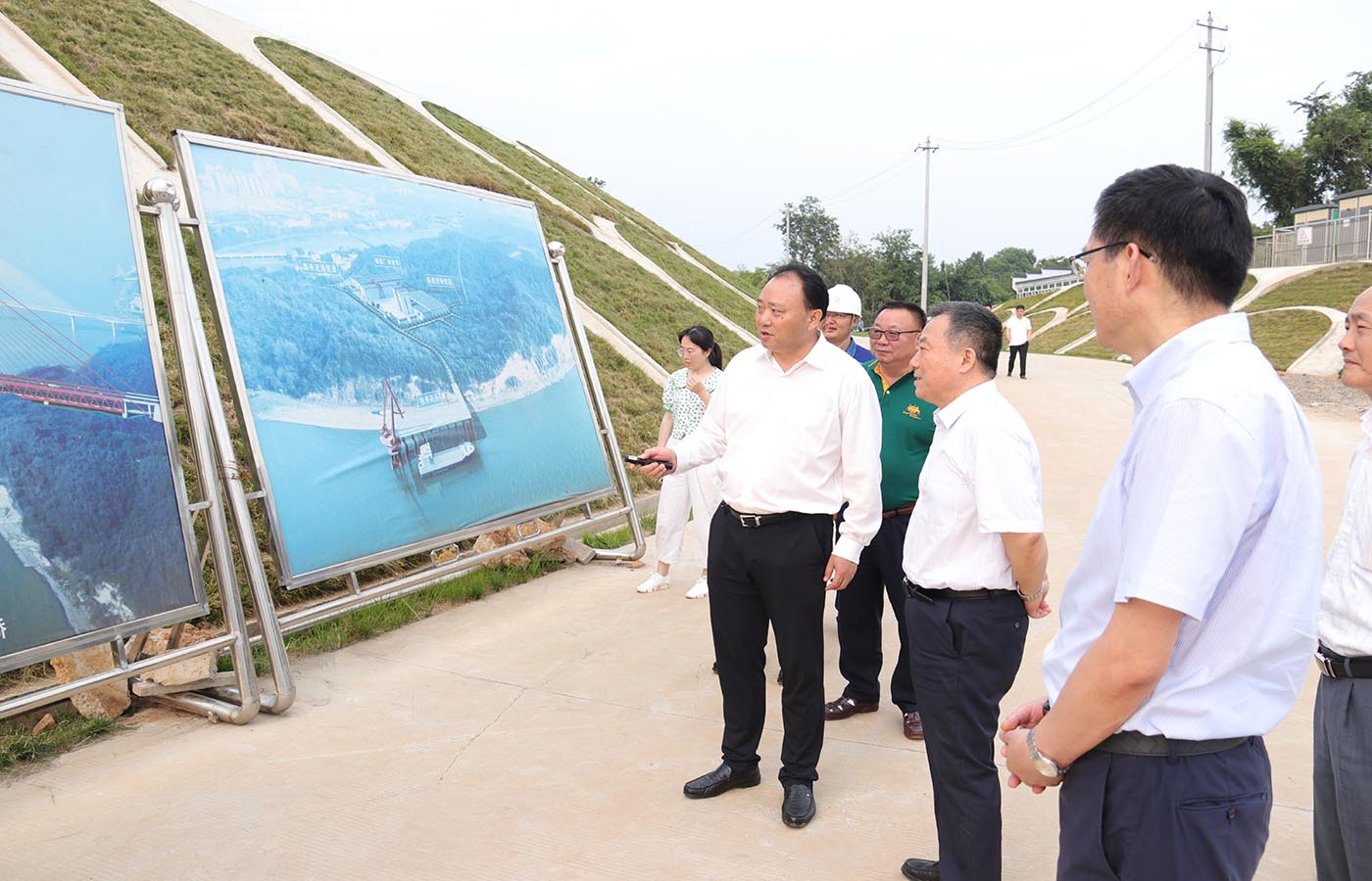 宋國權一行在G3銅陵長江公鐵大橋先行工程施工現(xiàn)場,仔細聽取項目進展情況匯報,研討項目在推進過程中的難題和困難,并對下一步工作提出具體要求。